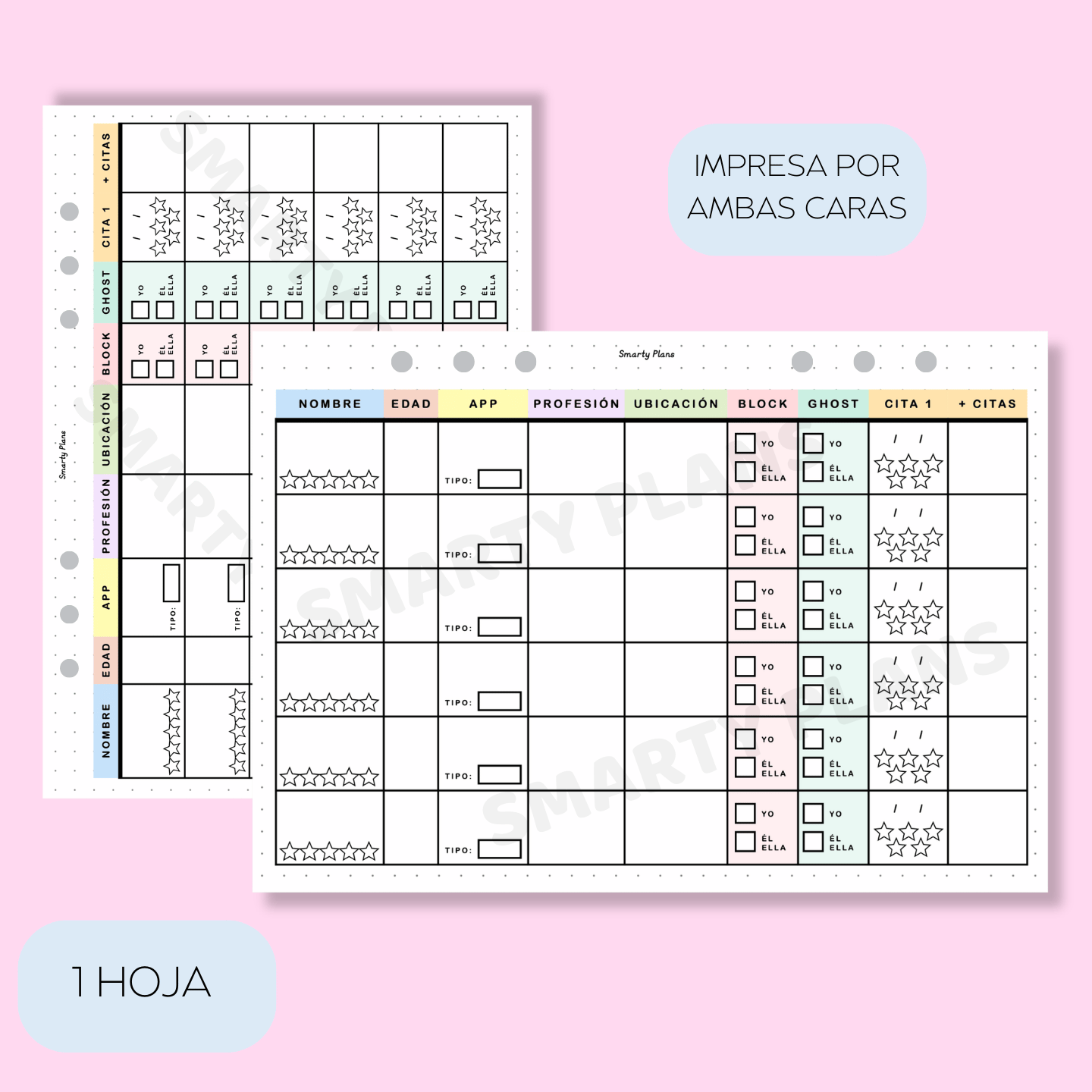 1 Hoja: plantilla para los solteros! ¿estás conociendo o quedando con gente? Con esta plantilla puedes hacer seguimiento. La plantilla es en horizontal para que quepa más información.